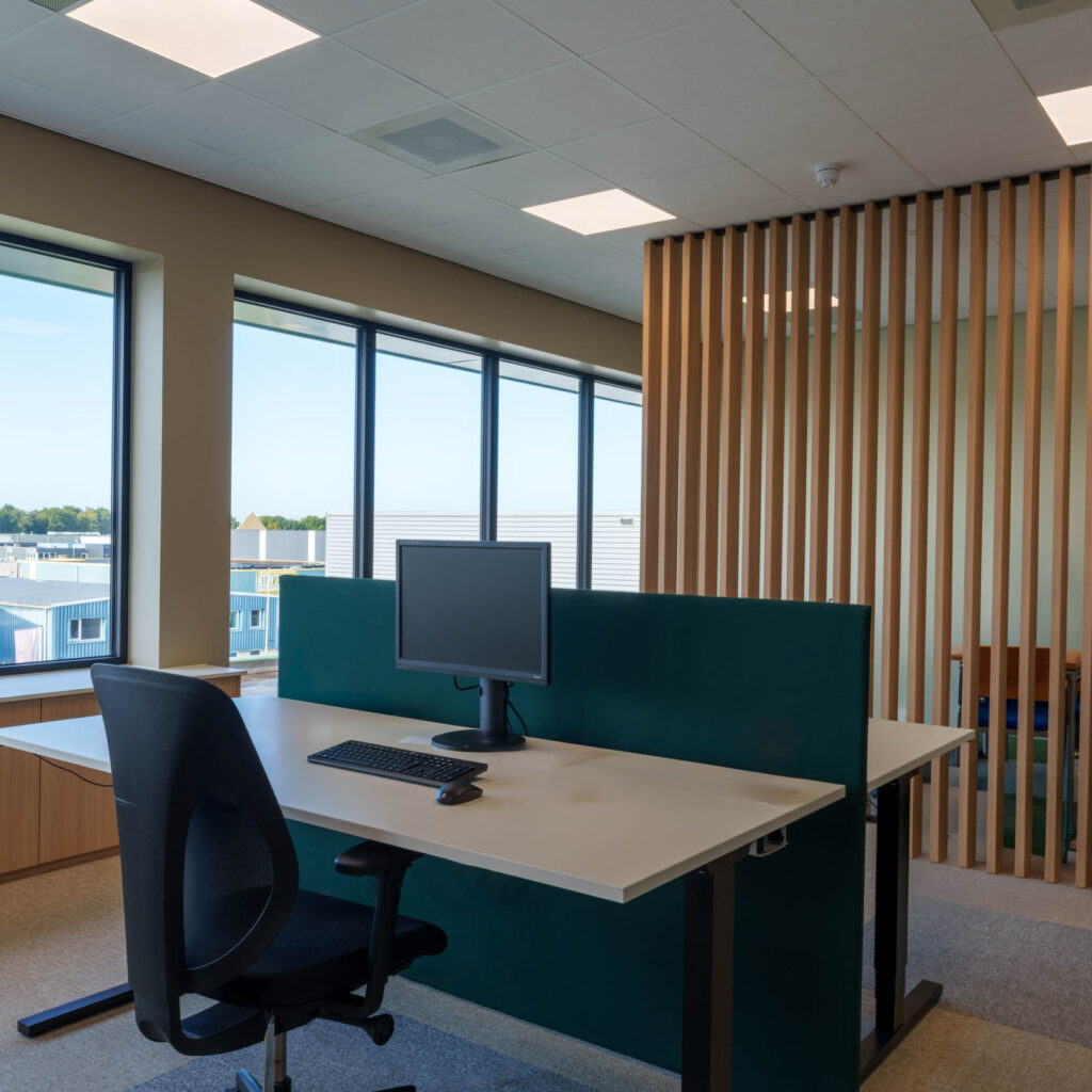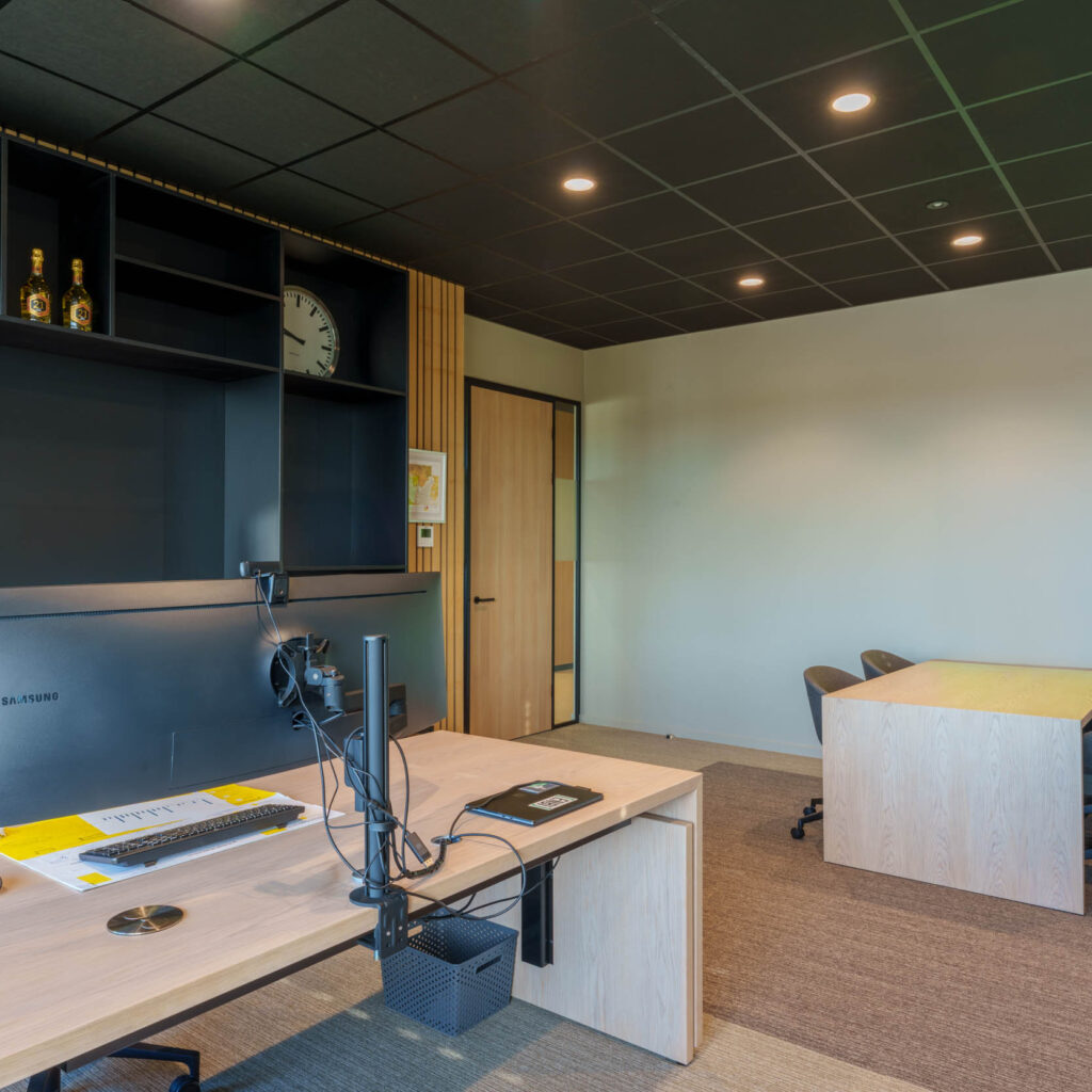 Samen met Enbi hebben we een werkomgeving gecreëerd die niet alleen functioneel en toekomstbestendig is, maar ook de identiteit van het bedrijf weerspiegelt. Het resultaat: een frisse, moderne en ergonomische werkplek waar medewerkers optimaal kunnen samenwerken en zich thuis voelen.
