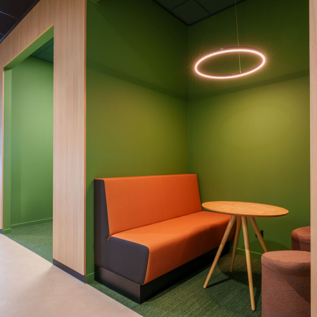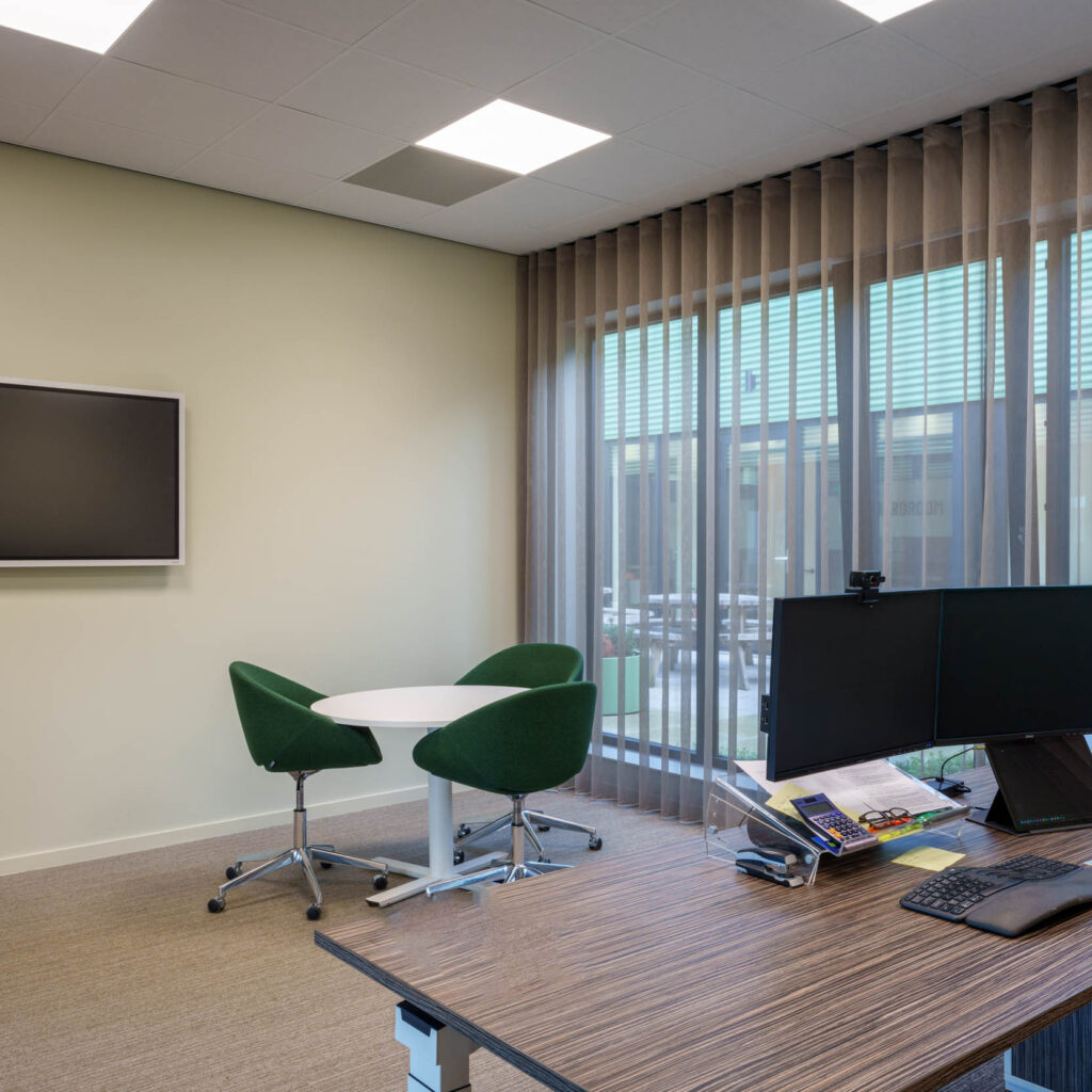 Van werkplekken en vergaderruimtes tot ontvangstruimte en ontspanningsplekken – ieder detail is met zorg uitgekozen en gerealiseerd.