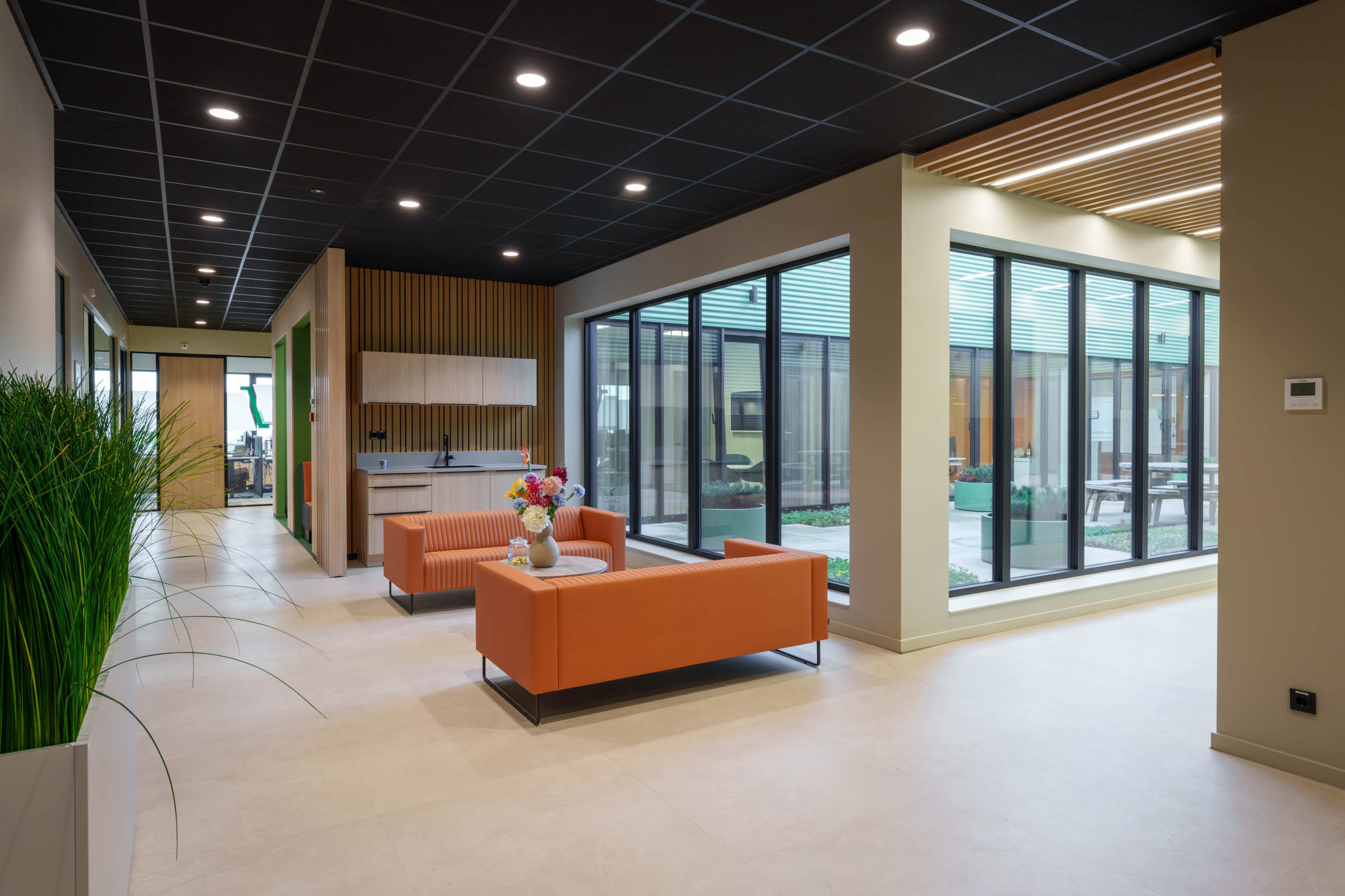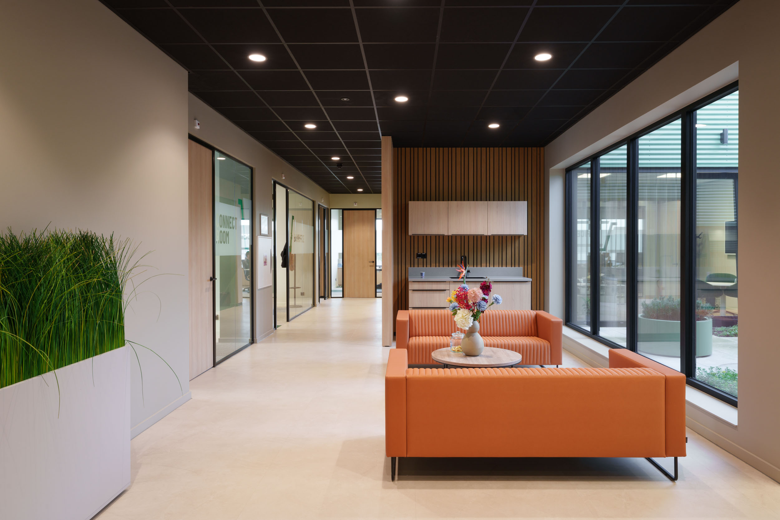 Van werkplekken en vergaderruimtes tot ontvangstruimte en ontspanningsplekken – ieder detail is met zorg uitgekozen en gerealiseerd.